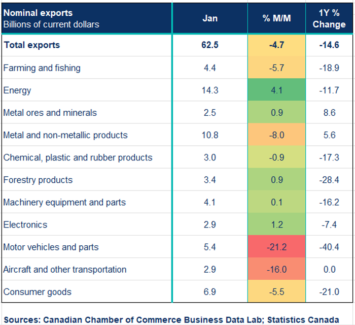 - January’s pullback largely reflects temporary factors, including auto production shutdowns and volatile commodity shipments such as gold. However, the release highlights how Canada’s export performance remains sensitive to swings in a few key sectors, meaning sustained export momentum will depend on a rebound in manufacturing output.
