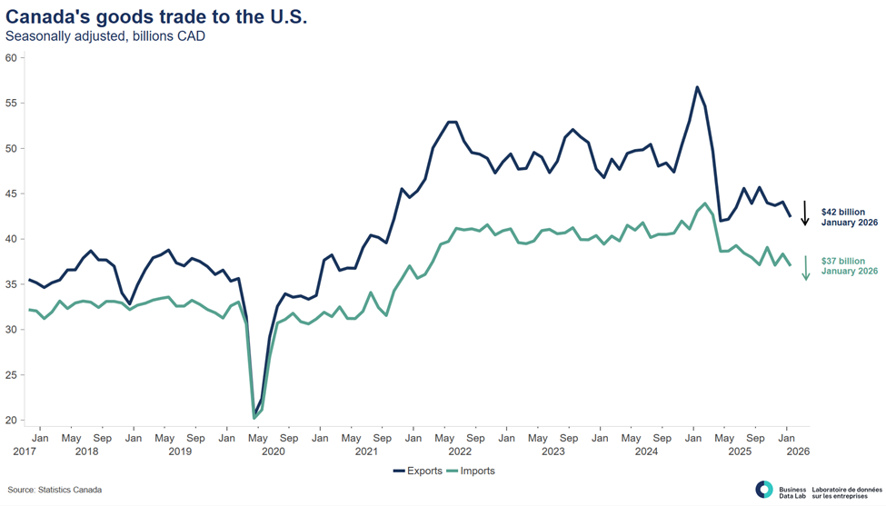 - If export volumes do not rebound following January’s auto production shutdowns, trade is likely to act as a headwind for first—quarter GDP growth, rather than the support seen late in 2025.