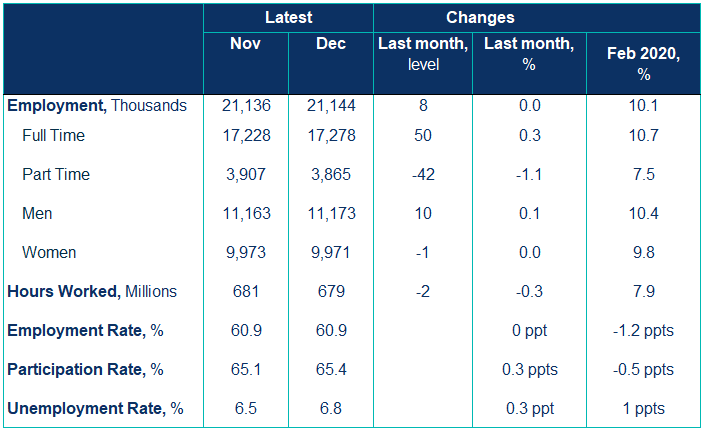- Unemployment and Participation Rates: Despite stricter immigration policies, the unemployment rate went up by 0.3 percentage points m/m to 6.8% in December. With more people looking for jobs than available, the participation rate also rose by 0.3 percentage points to 65.4% for all workers.